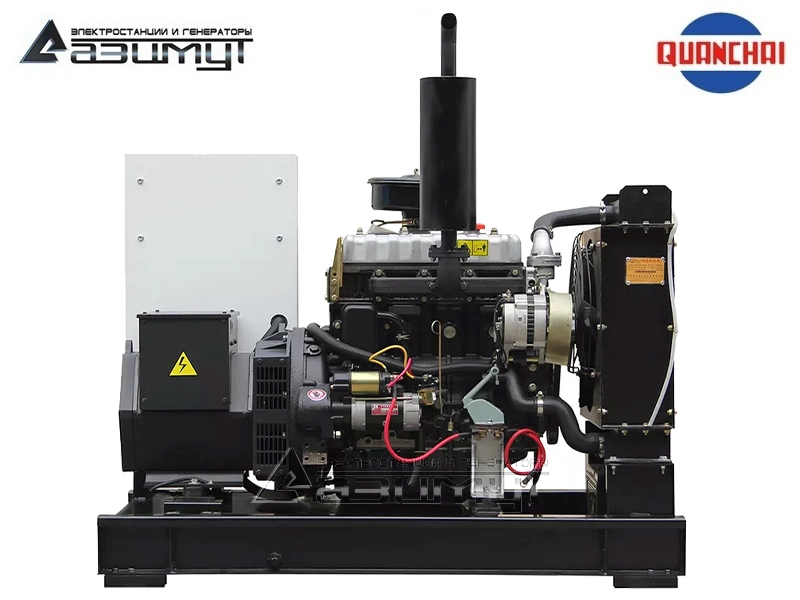 - первичного четырехцилиндрового дизельного двигателя водяного охлаждения с механической регулировкой частоты вращения Quanchai N485D, объемом 2,156 литра и номинальной мощностью 15,5 кВт, с промышленным глушителем, стандартным радиаторным блоком охлаждения и подогревателем охлаждающей жидкости,