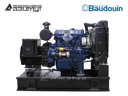 - первичного четырехцилиндрового дизельного двигателя водяного охлаждения с механической регулировкой частоты вращения BAUDOUIN MOTEURS 4M06G20/5e с промышленным глушителем и стандартным радиаторным блоком охлаждения,