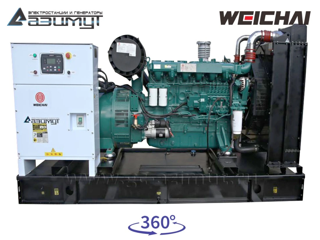 - первичного шестицилиндрового дизельного двигателя водяного охлаждения с механической регулировкой частоты вращения WEICHAI WP10D200E200, с промышленным глушителем и стандартным радиаторным блоком охлаждения,