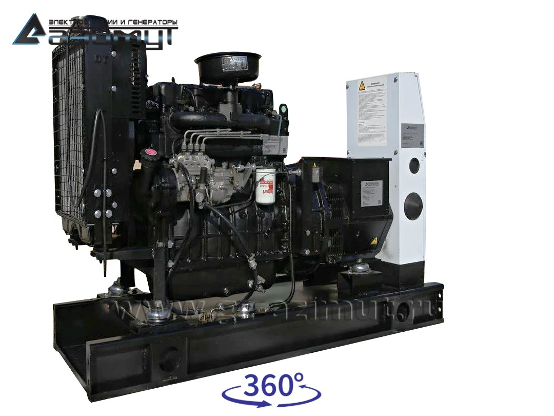 - первичного четырехцилиндрового дизельного двигателя водяного охлаждения с механической регулировкой частоты вращения AZIMUT 4R360D, объемом 3,61 литра и номинальной мощностью 30 кВт, с промышленным глушителем и стандартным радиаторным блоком охлаждения,