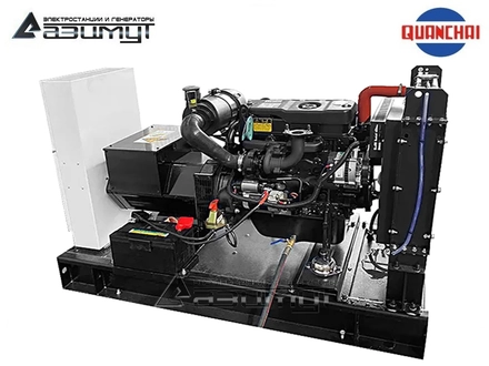 - синхронного бесщеточного трехфазного генератора 380 В Quanchai Azimut Z184G номинальной мощностью 24 кВт c автоматической регулировкой напряжения,