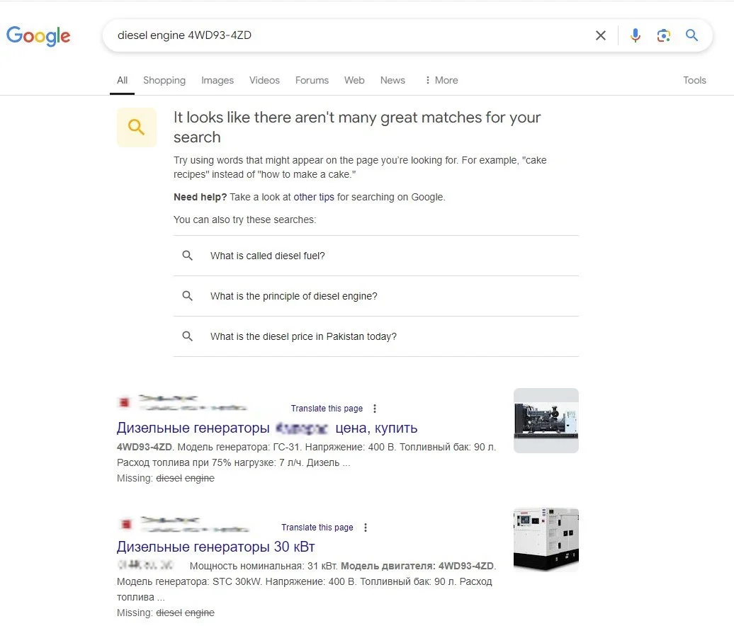 Также на рынке встречаются предложения ДГУ АД-30-Т400 с двигателем 4WD93-4ZD от неизвестного производителя. Какая-либо информация о технических характеристиках и производителе этого двигателя отсутствует в английском и китайском сегменте интернета. По запросу «diesel engine 4WD93-4ZD» Google показывает только сайты российского постащика и его дилеров: