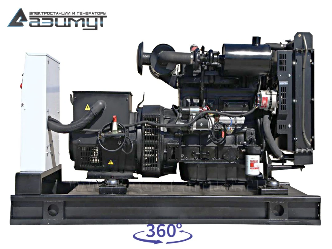 - первичного четырехцилиндрового дизельного двигателя водяного охлаждения с механической регулировкой частоты вращения AZIMUT 4R420TD, объемом 4,15 литра и номинальной мощностью 48 кВт, с промышленным глушителем и стандартным радиаторным блоком охлаждения,