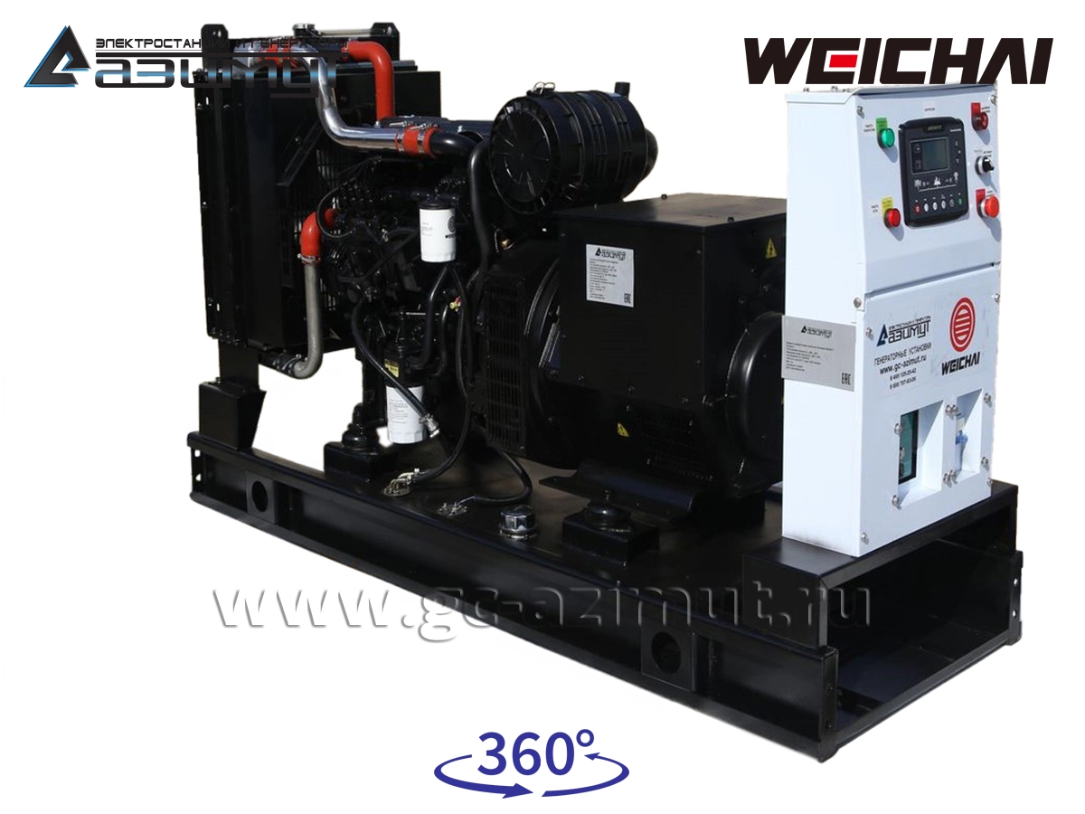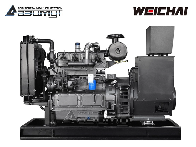 - синхронного бесщеточного трехфазного генератора 380 В AZIMUT Z224D номинальной мощностью 40 кВт c автоматической регулировкой напряжения,