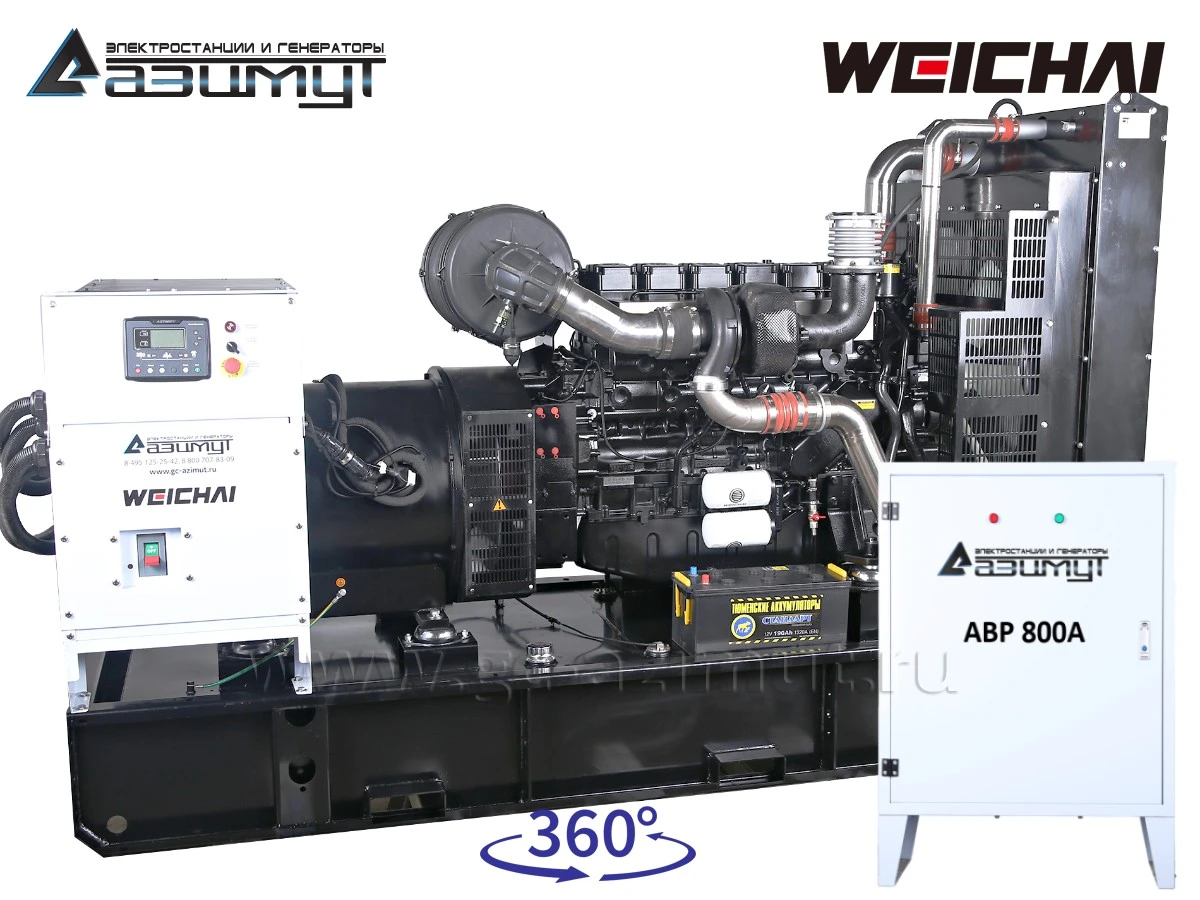 Трехфазный дизельный генератор Weichai 400 кВт открытого исполнения с АВР, модель АД 400С-Т400-2РМ7