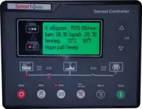- вывод на ЖК дисплей значений основных параметров работы электрогенератора: частота, напряжение, сила тока, скорость вращения двигателя, давление масла, температура охлаждающей жидкости, наработка, количество запусков, выработанная электроэнергия, напряжение АКБ |