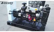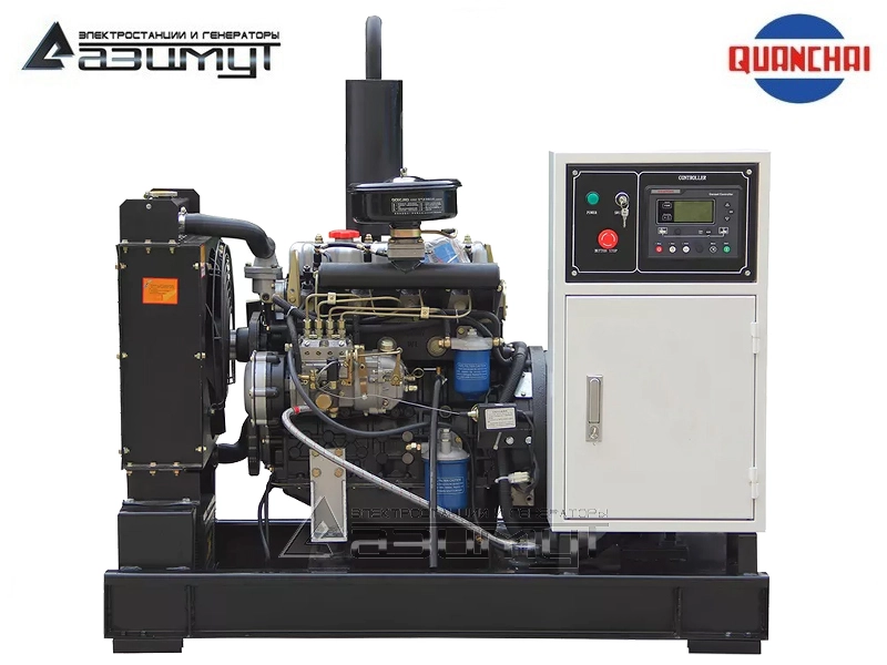- первичного четырехцилиндрового дизельного двигателя водяного охлаждения с механической регулировкой частоты вращения Quanchai N485D, объемом 2,156 литра и номинальной мощностью 15,5 кВт, с промышленным глушителем, стандартным радиаторным блоком охлаждения и подогревателем охлаждающей жидкости,