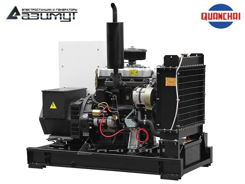 - первичного четырехцилиндрового дизельного двигателя водяного охлаждения с механической регулировкой частоты вращения Quanchai QC490D, объемом 2,67 литра и номинальной мощностью 20 кВт, с промышленным глушителем и стандартным радиаторным блоком охлаждения,