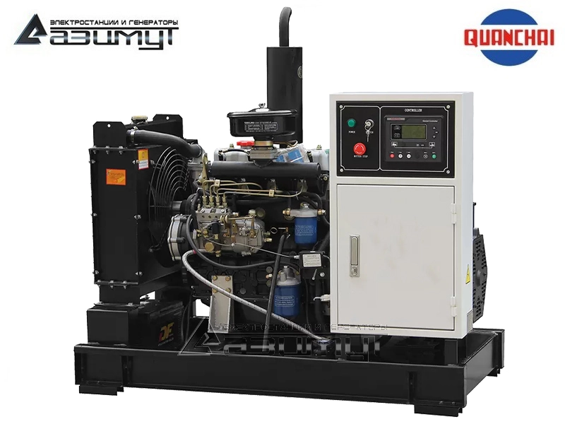 - первичного четырехцилиндрового дизельного двигателя водяного охлаждения с механической регулировкой частоты вращения Quanchai QC490D, объемом 2,67 литра и номинальной мощностью 20 кВт, с промышленным глушителем и стандартным радиаторным блоком охлаждения,