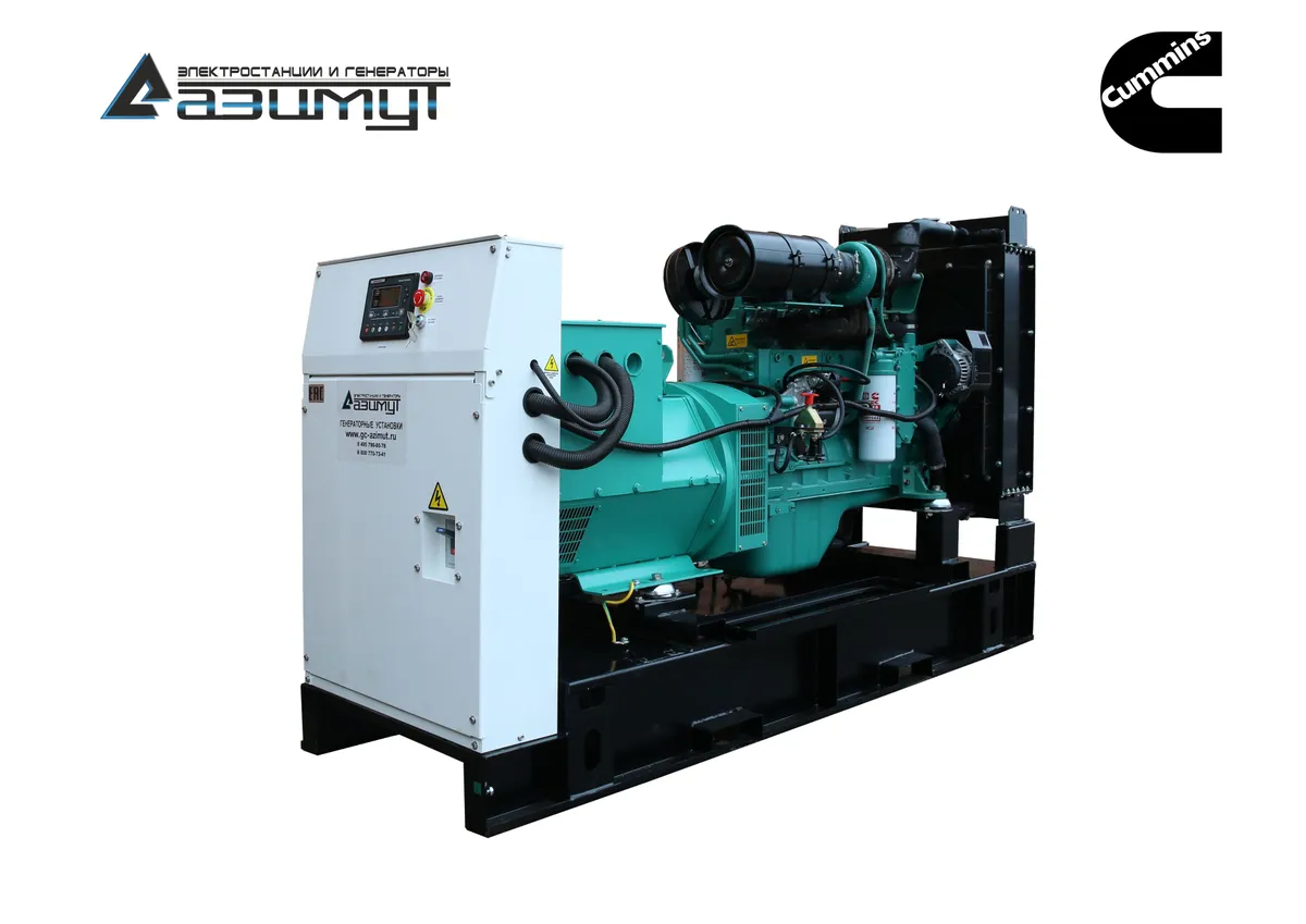- первичного шестицилиндрового дизельного двигателя водяного охлаждения с электронной регулировкой частоты вращения CUMMINS 6CTA8.3-G2, объемом 8,3 литра и номинальной мощностью 163 кВт, с промышленным глушителем и стандартным радиаторным блоком охлаждения,
