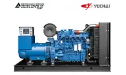 - первичного шестицилиндрового дизельного двигателя водяного охлаждения с механической регулировкой частоты вращения Yuchai YC6A245L-D21, объемом 7,25 литра и номинальной мощностью 165 кВт, с промышленным глушителем, стандартным радиаторным блоком охлаждения и подогревателем охлаждающей жидкости,