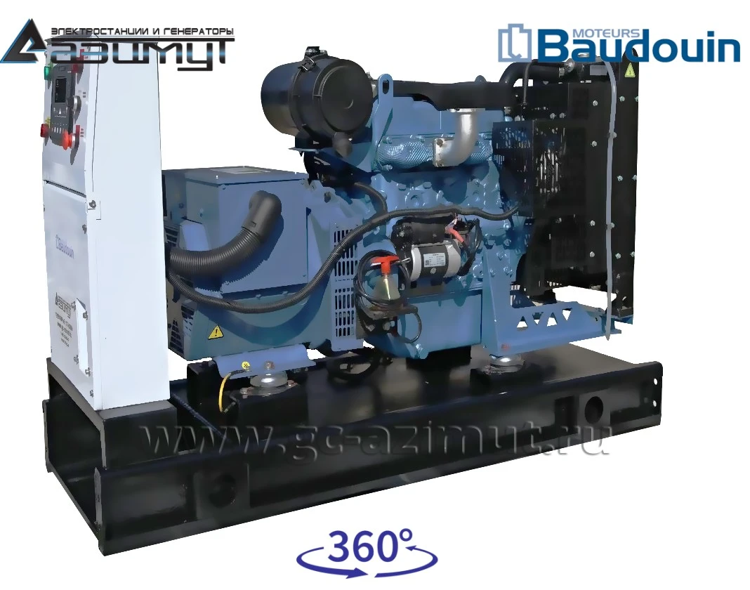 - первичного четырехцилиндрового дизельного двигателя водяного охлаждения с механической регулировкой частоты вращения BAUDOUIN MOTEURS 4M06G25/5e с промышленным глушителем и стандартным радиаторным блоком охлаждения,