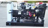 - первичного четырехцилиндрового дизельного двигателя водяного охлаждения с механической регулировкой частоты вращения Quanchai QC490D, объемом 2,67 литра и номинальной мощностью 20 кВт, с промышленным глушителем, стандартным радиаторным блоком охлаждения и подогревателем охлаждающей жидкости,