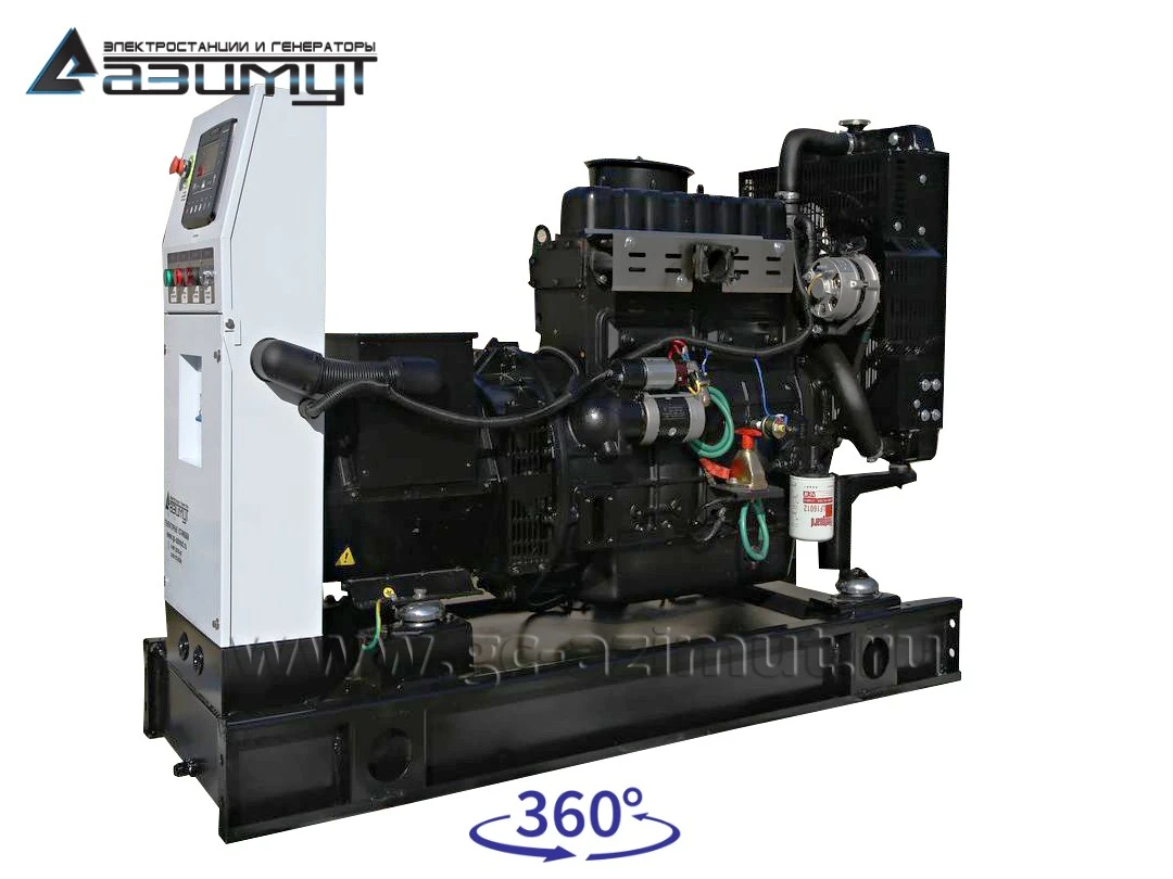 - первичного четырехцилиндрового дизельного двигателя водяного охлаждения с механической регулировкой частоты вращения AZIMUT 4R360D, объемом 3,61 литра и номинальной мощностью 30 кВт, с промышленным глушителем и стандартным радиаторным блоком охлаждения,