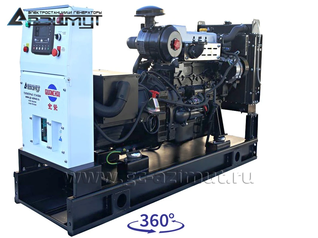 - синхронного бесщеточного трехфазного генератора 380 В Quanchai Azimut Z184G номинальной мощностью 24 кВт c автоматической регулировкой напряжения,